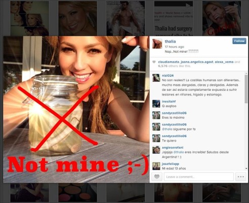 Miami (EE.UU.), 13 ago (EFE).- La cantante mexicana Thalía publicó en su cuenta de Instagram una fotografía en la que aparece con un tarro de cristal con unas costillas en su interior como broma sobre su rumoreada reducción de cintura.