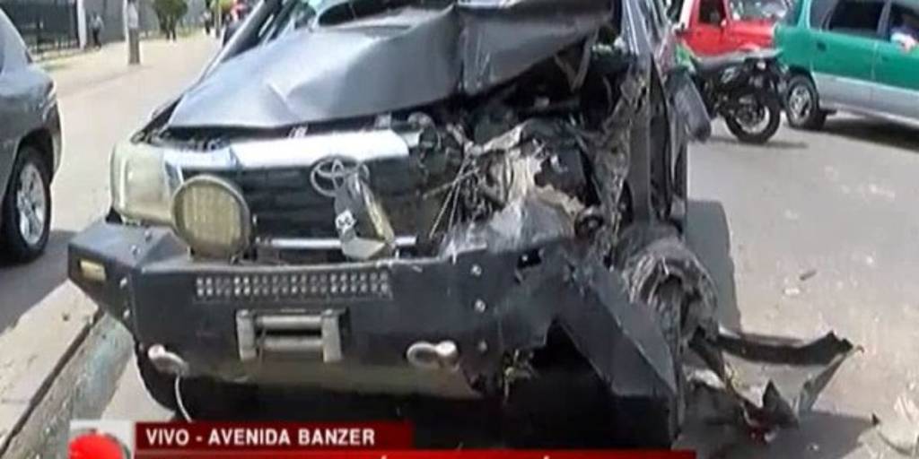 En la zona del cuarto anillo y avenida Banzer, tres vehículos se vieron involucrados en un hecho de tránsito que dejó daños materiales de consideración, uno de los propietarios afirma que estaban parados por el semáforo rojo y un vehículo vino a gran velocidad y los impactó.