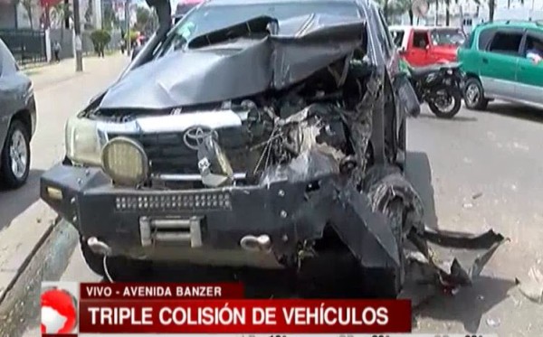Una triple colisión en la avenida Banzer deja daños materiales de consideración