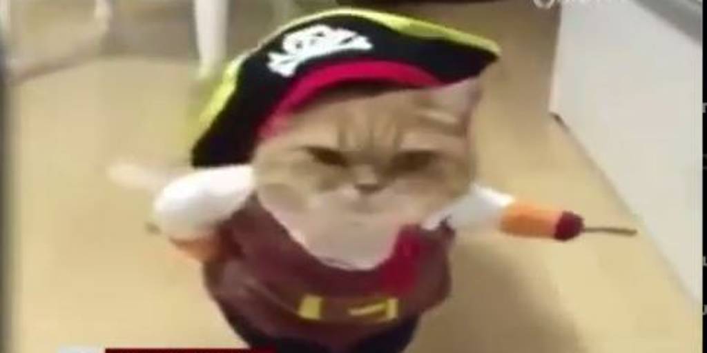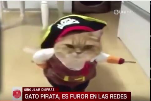Redacción, 19 de octubre, 2015.- Se trata de un gato disfrazado de pirata que con sus movimientos imita a un típico villano de los mares.
