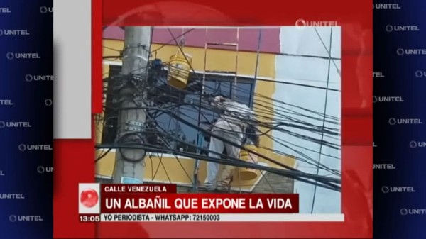 Santa Cruz, 22 de octubre de 2015.- Albañil trabajaba sin las mínimas condiciones de seguridad en una obra de la calle Venezuela,