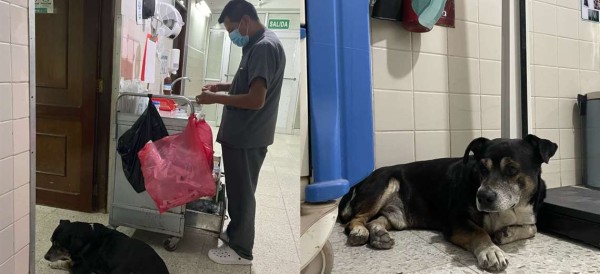 Ellos cuentan que cuando se abre las puertas a las 06:30 el perrito entra y se queda todo el día hasta las 22:00 de la noche, aunque hay días que se queda a dormir en el hospital.