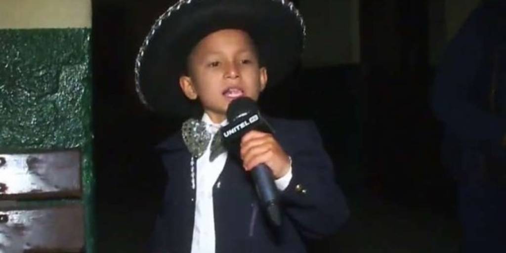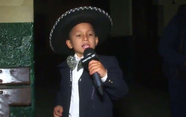 “Escuché a mi papá y a mi mamá cantar, entonces por la melodía me gustó y aprendí rápido. Me gustaría ser cantante”, dijo el niño que viste un traje de mariachi mexicano.