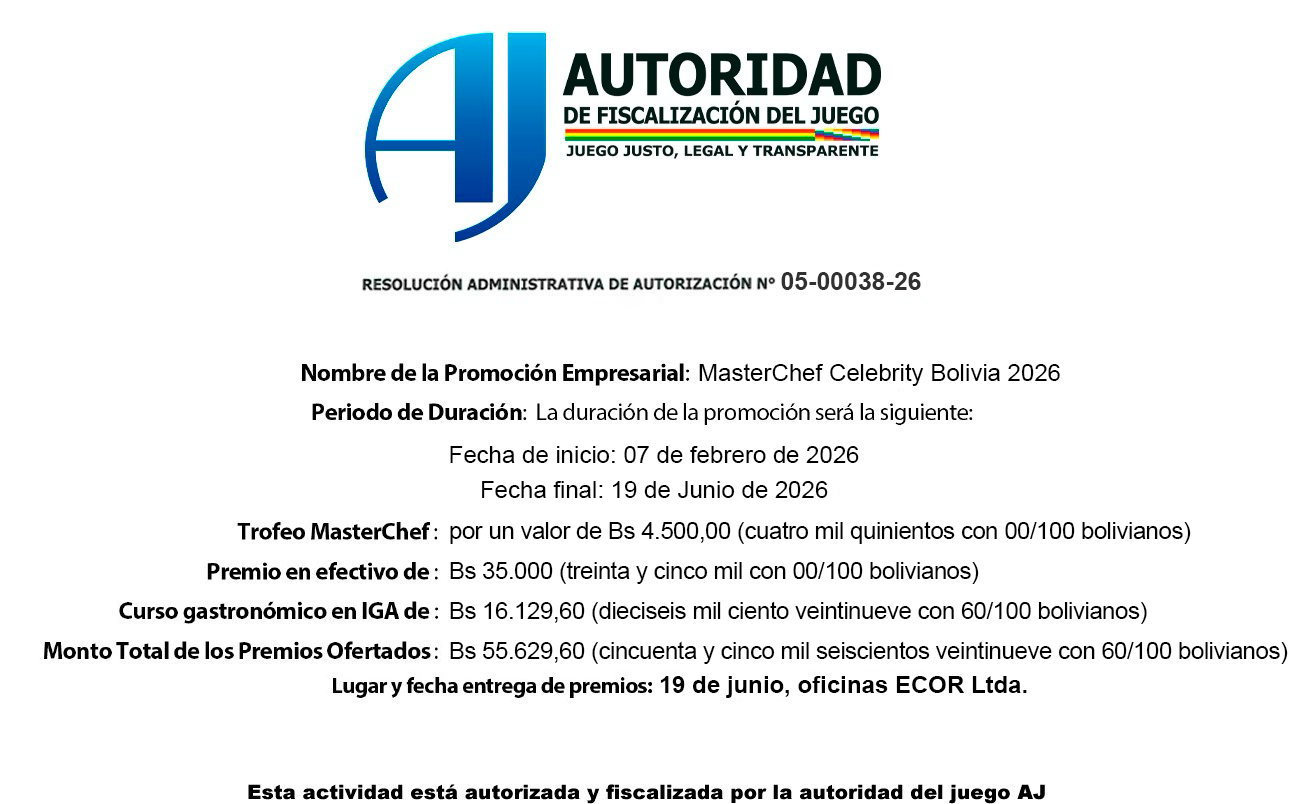 MASTERCHEF CELEBRITY BOLIVIA 2026