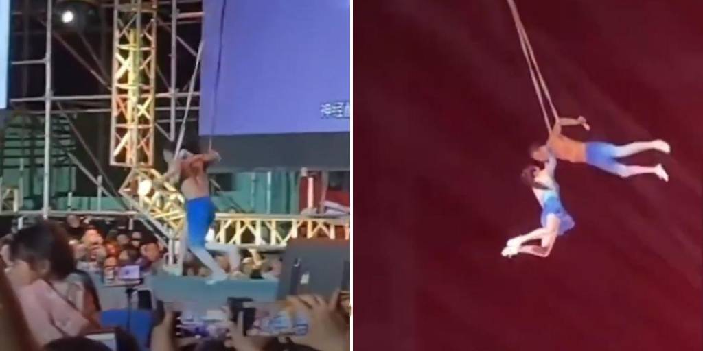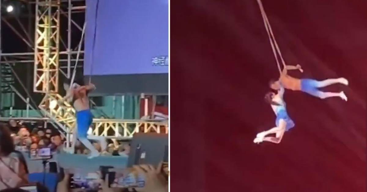 Acróbata china murió tras caer casi nueve metros, su esposo no pudo sujetarla