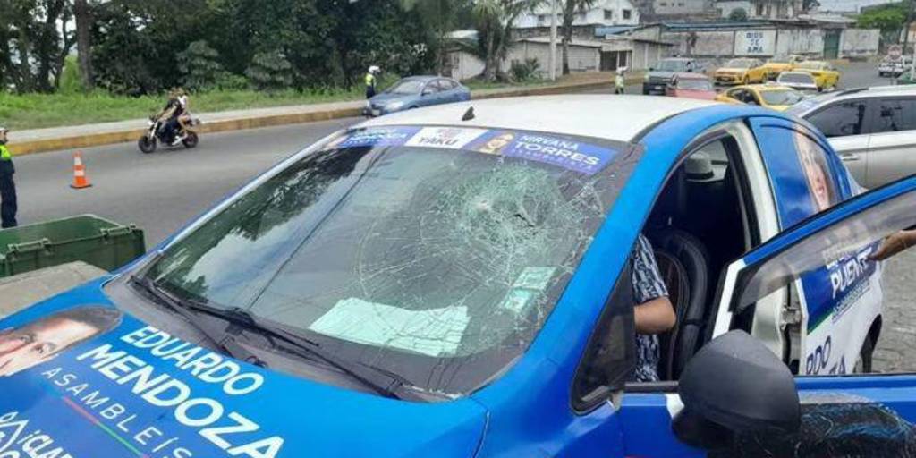 Las fotos difundidas en redes sociales y por medios locales muestran un vehículo con decoraciones de campaña electoral que ha recibido aparentemente un impacto de bala en el lado izquierdo del cristal frontal, donde va situado el conductor.