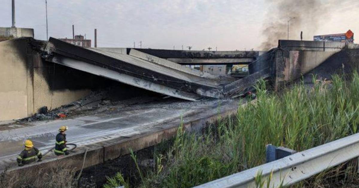 Colapsa puente de una de las principales autopistas de EEUU por un vehículo en llamas