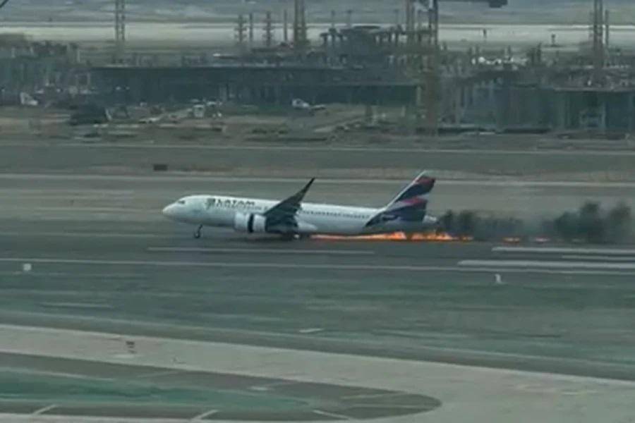 Según imágenes de personas en el aeropuerto y otras en canales de televisión, la aeronave quedó parcialmente envuelta en llamas en su parte posterior, con daños al menos en una de las alas.
