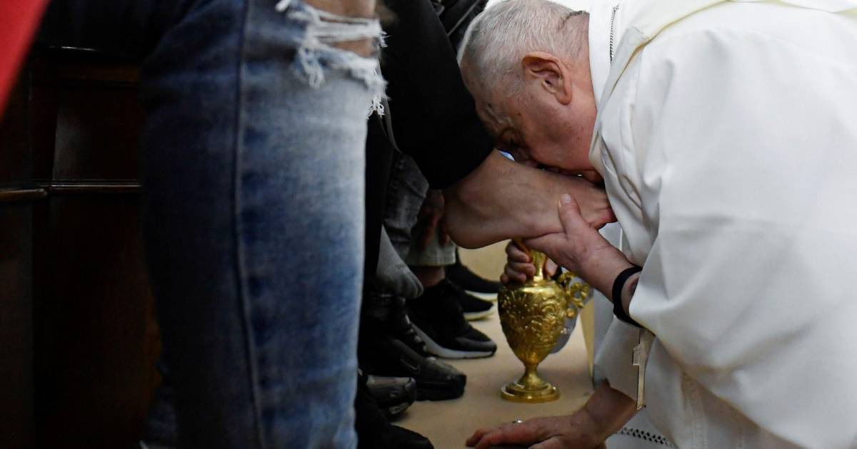 El papa lava los pies a doce jóvenes detenidos en ritual de Jueves Santo