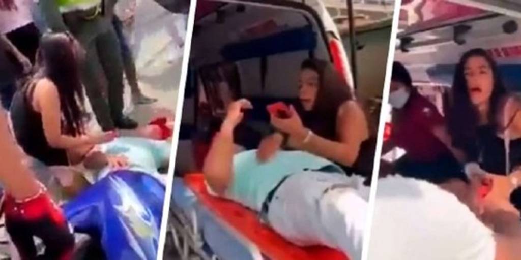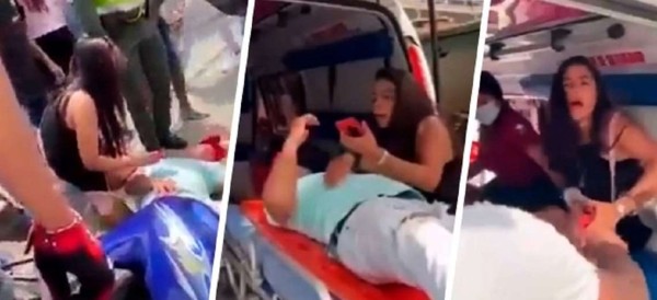 El hombre fue subido en una camilla a una ambulancia a donde también subió su pareja para exigirle que le de la contraseña del teléfono. El hecho sucedió en Colombia
