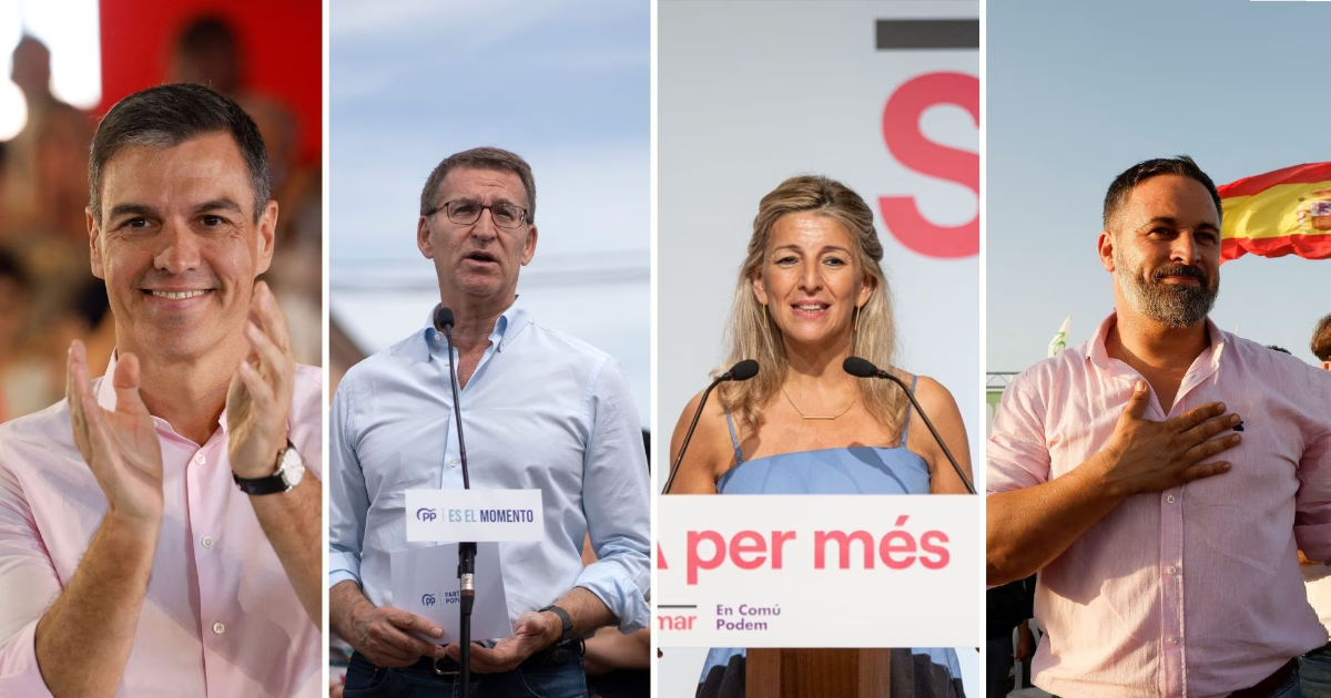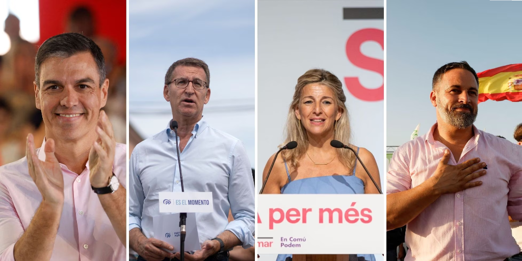 El socialista Pedro Sánchez, el conservador Alberto Núñez Feijóo, la comunista Yolanda Díaz y el ultraderechista Santiago Abascal son los principales candidatos en las elecciones legislativas de este domingo en España
