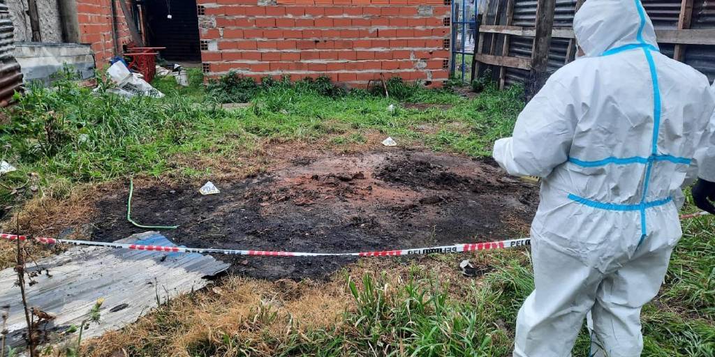 El cuerpo del hombre estaba dentro de una bolsa y con el torso calcinado, lo que dificultaba aún más el trabajo de los peritos. Además, estaba semienterrado en una fosa en el patio y con la tierra removida.