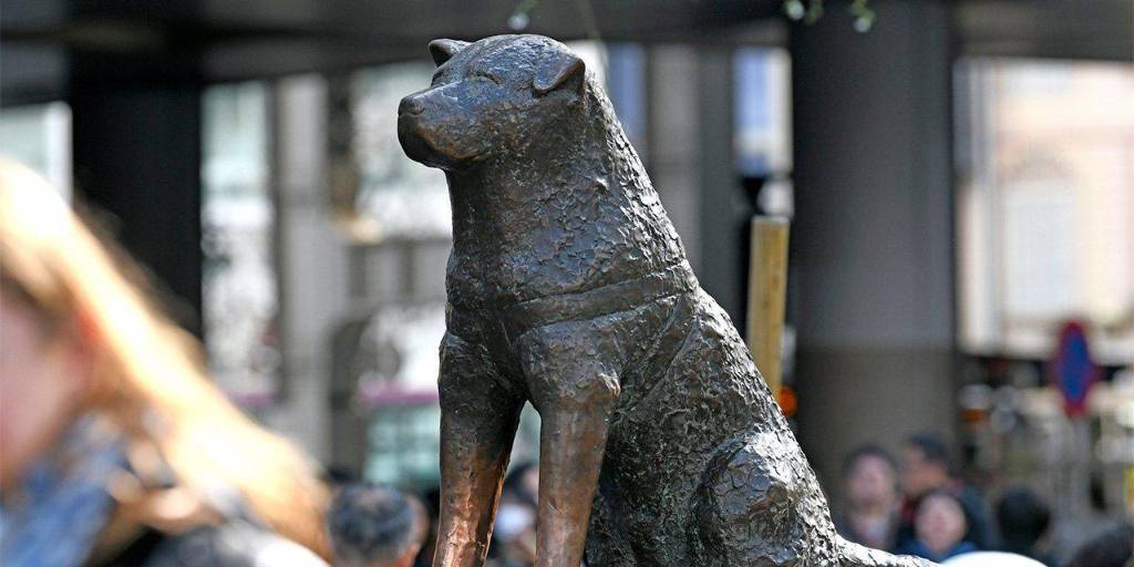 Conocido mundialmente como “el perro fiel” por esperar cada día en la estación a su amo, Hidesaburo Ueno (1872-1925), a su llegada del trabajo, incluso después de que él muriera, Hachiko, de raza Akita y color crema, está inmortalizado muy cerca del famoso cruce de Shibuya en una figura de bronce, obra del escultor Takeshi Ando y alzada en 1948.