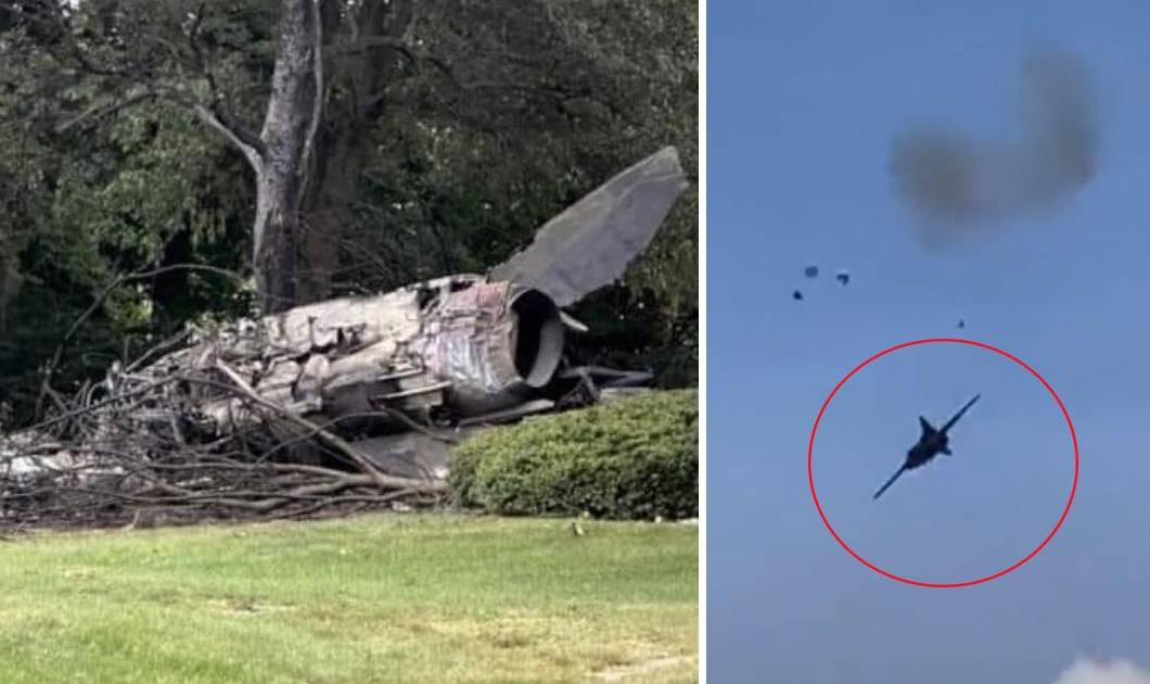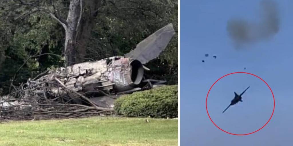 Según los reportes, el jet tenía a dos personas a bordo, quienes se eyectaron cuando el avión empezó a presentar fallas y explosionó en el aire, mientras brindaban un show aéreo.