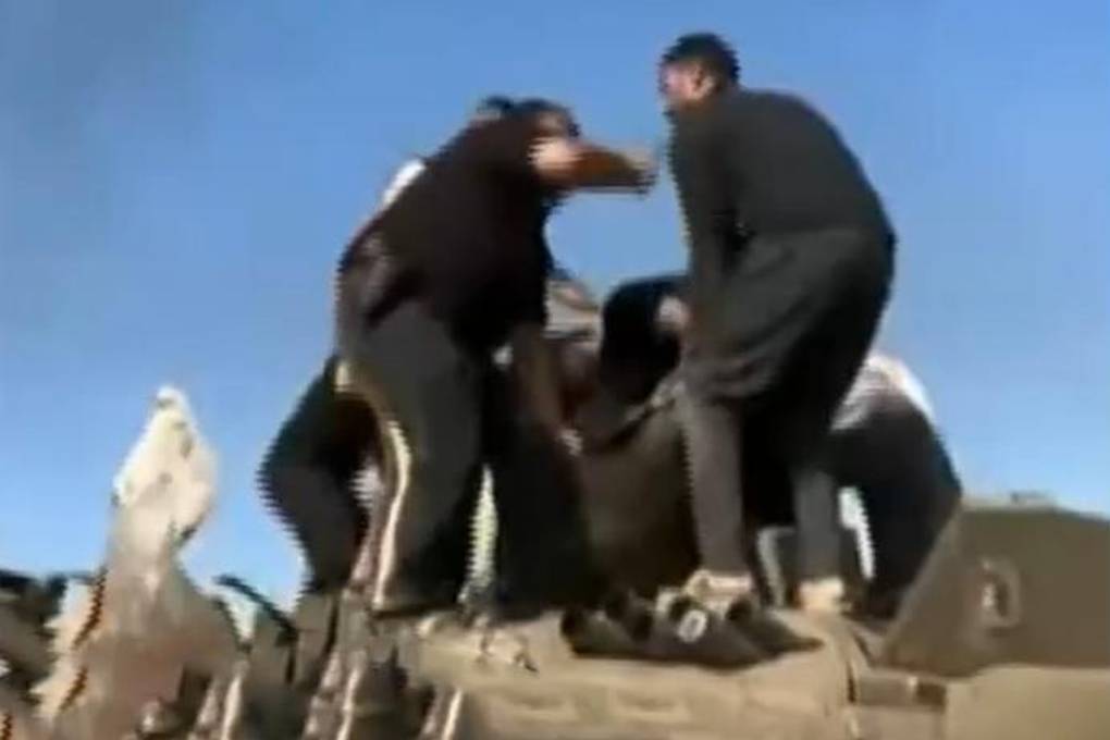 El último video muestra el momento exacto en el que un soldado israelí es capturado y sacado del tanque en el que se encontraba por parte de un numeroso grupo de personas.