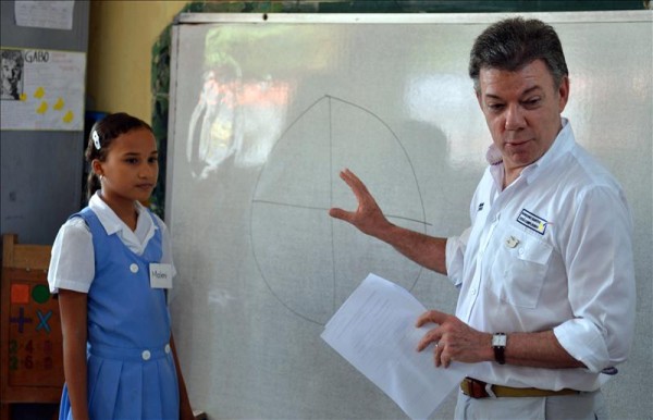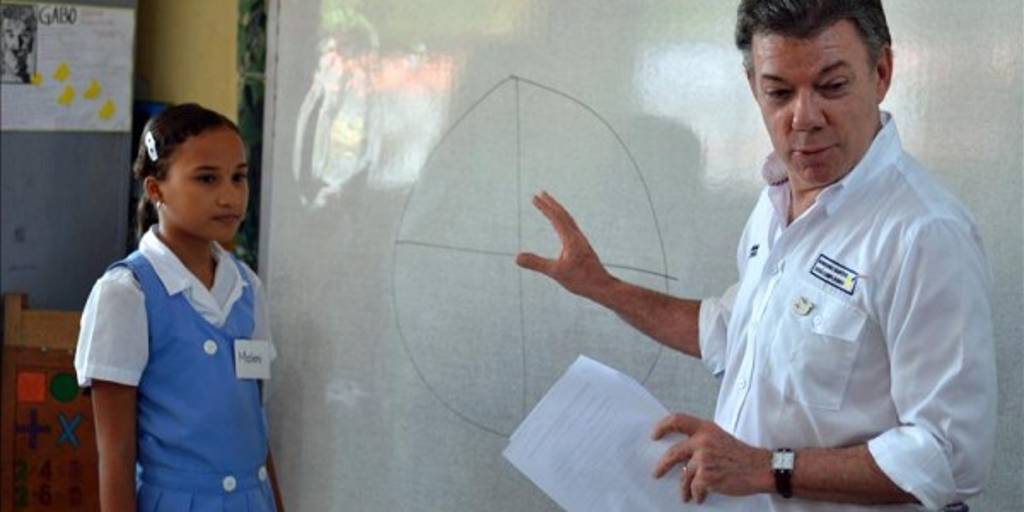 El proyecto, que lleva el nombre de "Plan Padrino", fue presentado en la ciudad de Cartagena (norte), donde el mandatario dio una clase de matemáticas básicas a escolares de primaria.