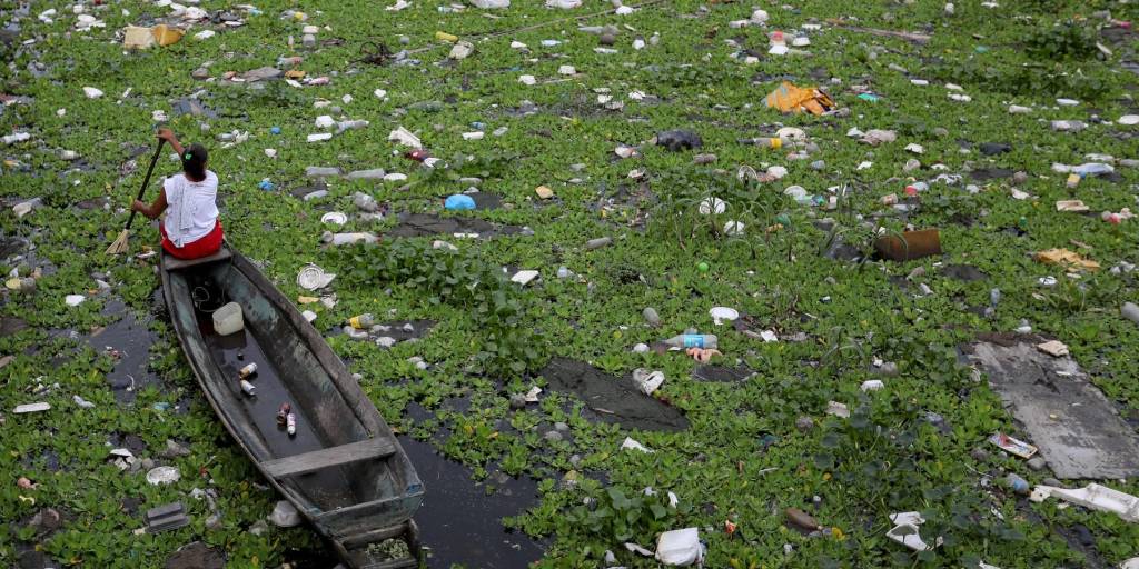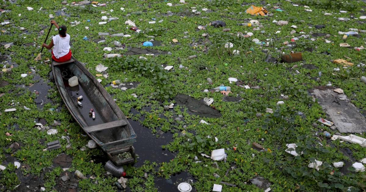 [MICHAEL DANTAS / AFP] / Una mujer recoge latas de aluminio en su bote en el arroyo Educandos en Manaos, estado de Amazonas, Brasil, en junio de 2023, durante el Día Mundial del Medio Ambiente.