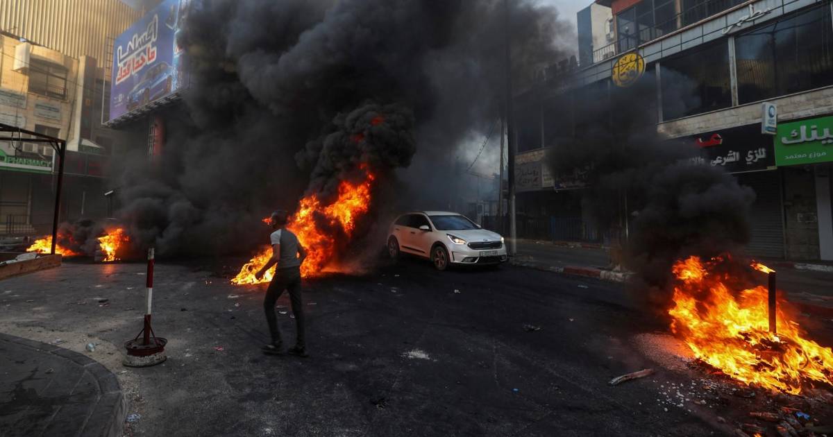 [JAAFAR ASHTIYEH / AFP] / Palestinos queman llantas y desechos durante una operación militar israelí en el campo de refugiados de Yenin en la Cisjordania ocupada desde este 3 de julio.