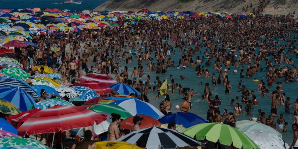 En Río, la gente corrió al mar para refrescarse y abarrotó las emblemáticas playas de Ipanema y Copacabana, con pareos y sombrillas ocupando el espacio hasta el borde del agua, lo que hizo casi imposible ver la arena.