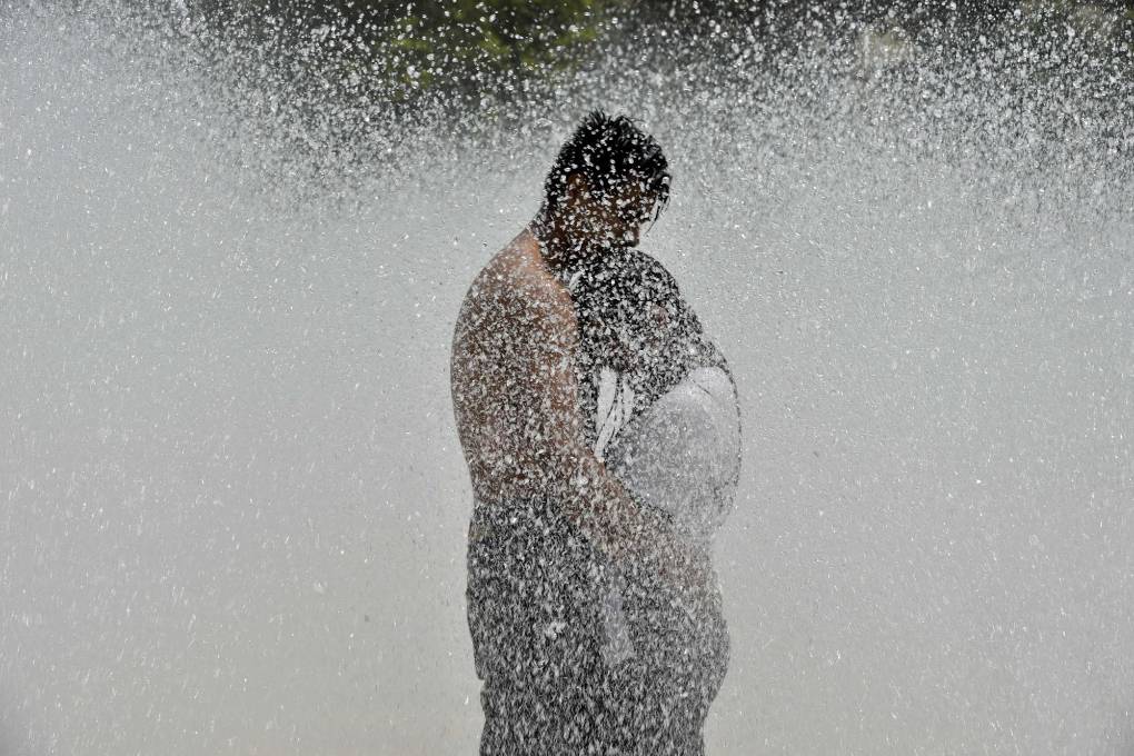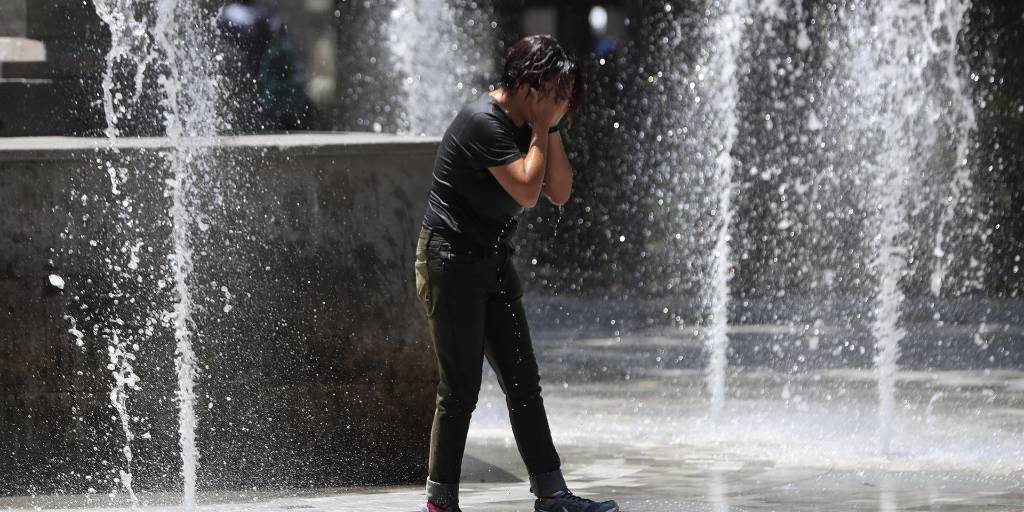 [Mario Guzmán / EFE] / Una mujer se refresca en una fuente el 14 de junio de 2023, en la Alameda Central la Ciudad de México (México)