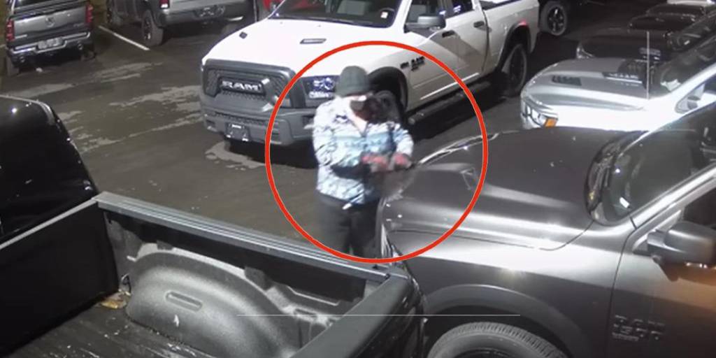 Posteriormente, recorre tranquilamente el lugar, acercándose a los vehículos y tocándolos ligeramente con lo que parece algún objeto corto punzante.