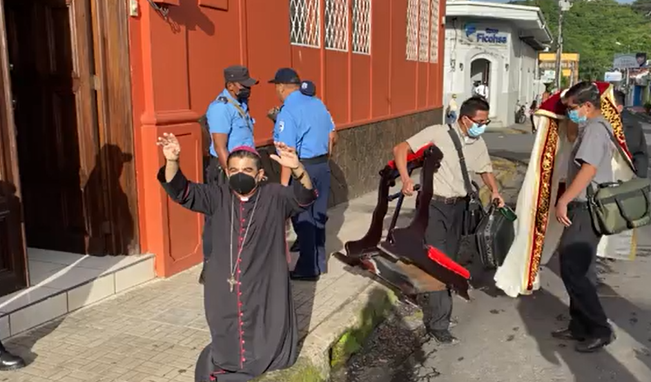 La policía sitió la curia días después de que Álvarez denunciara el cierre por parte de las autoridades de cinco emisoras católicas y reclamara al gobierno de Daniel Ortega respeto a la “libertad” religiosa.