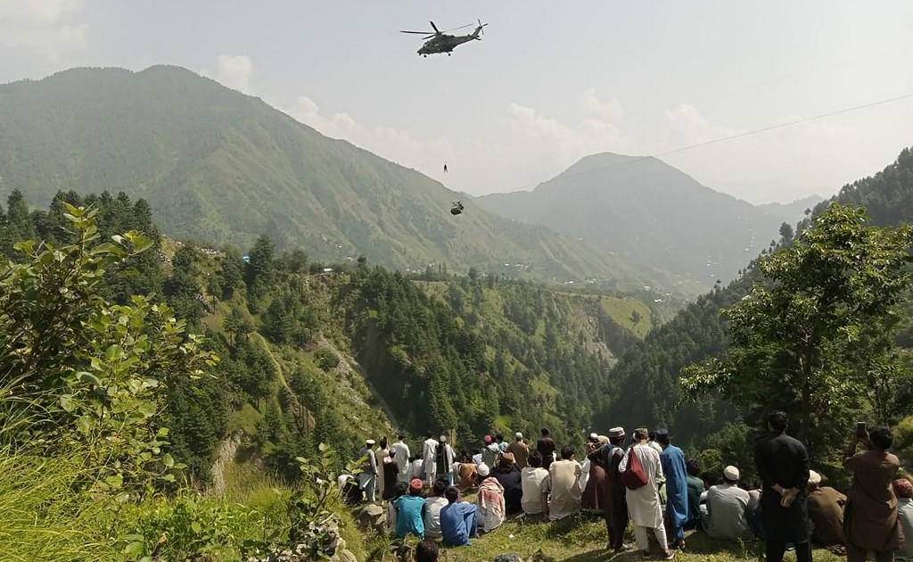 Rescatan a los 8 ocupantes de teleférico parado a 350 metros de altura en Pakistán