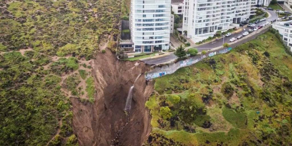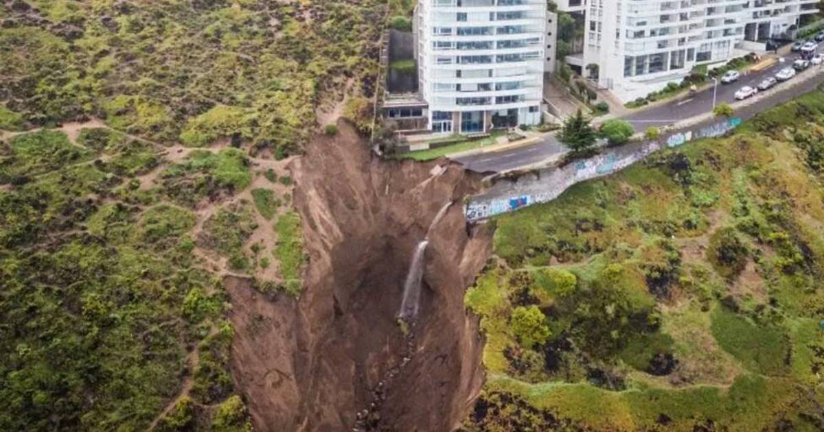 Segundo socavón por lluvias pone en riesgo de colapso un edificio de lujo en Viña del Mar