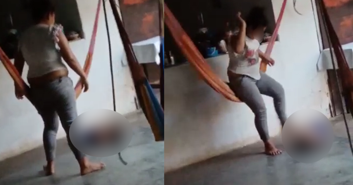 [Foto: Captura de pantalla] / La mujer golpeó al bebé en el suelo.