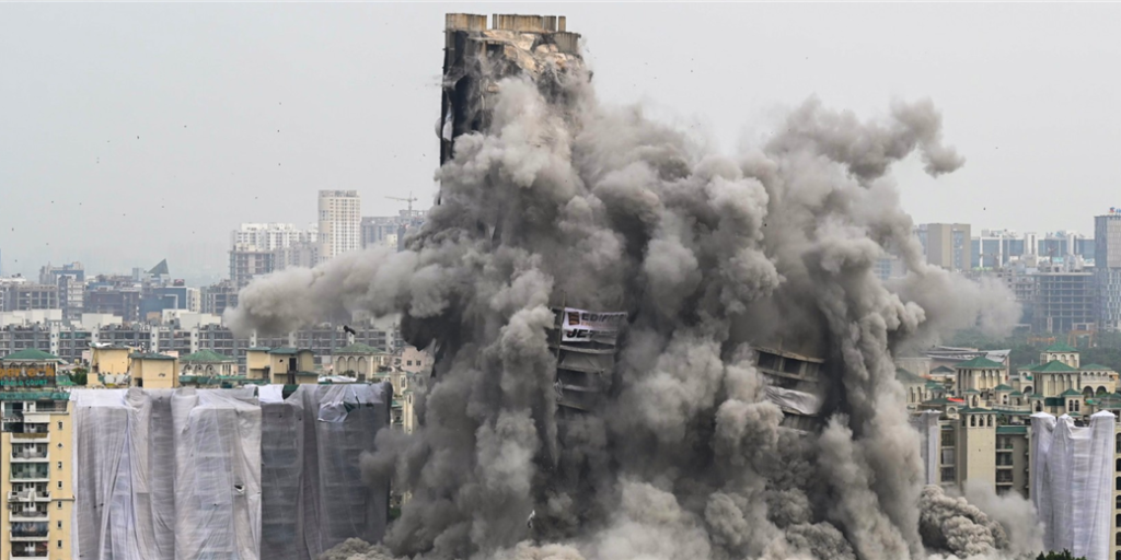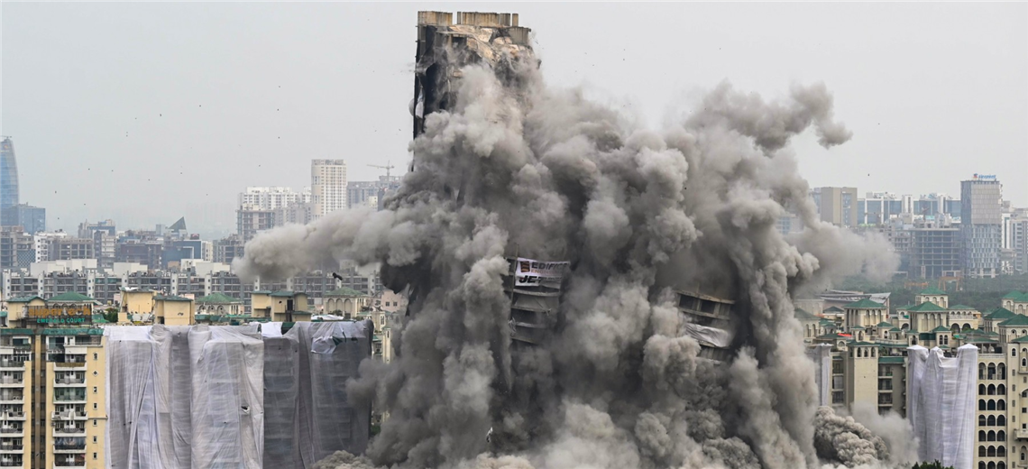 La implosión controlada, gracias a 3.700 kg de explosivos, tuvo lugar en Noida, en el sudeste de Nueva Delhi. Se trató de la más importante demolición jamás registrada en India, según los medios locales, la cual se realizó en tan solo nueve segundos.
