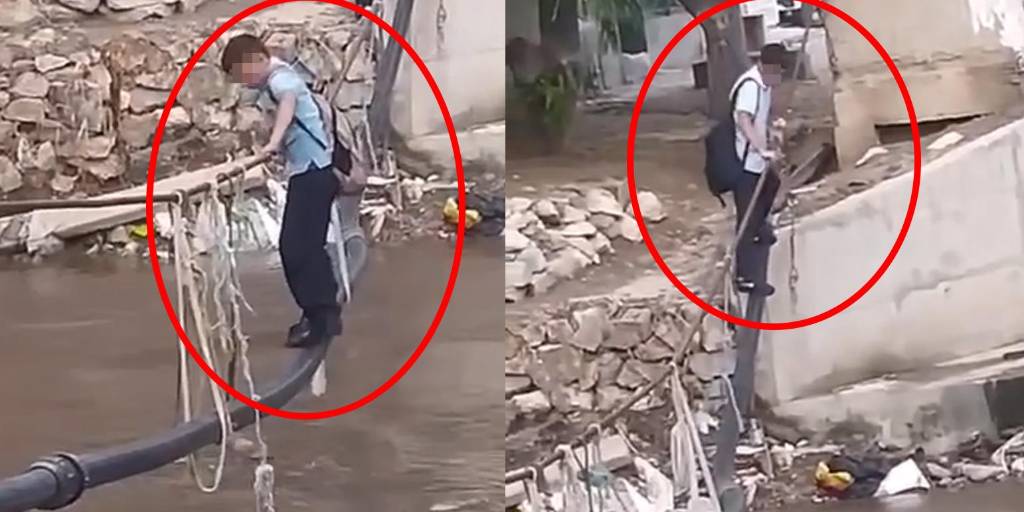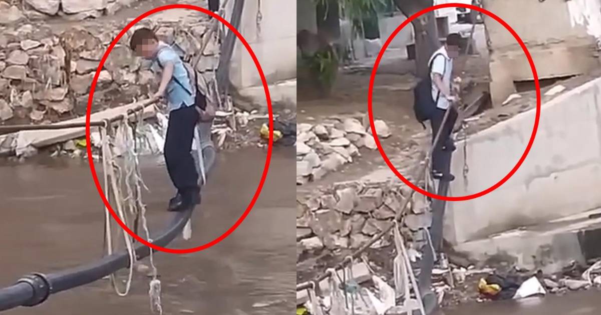 Video: Estudiantes exponen sus vidas al tener que cruzar una tubería para llegar al colegio