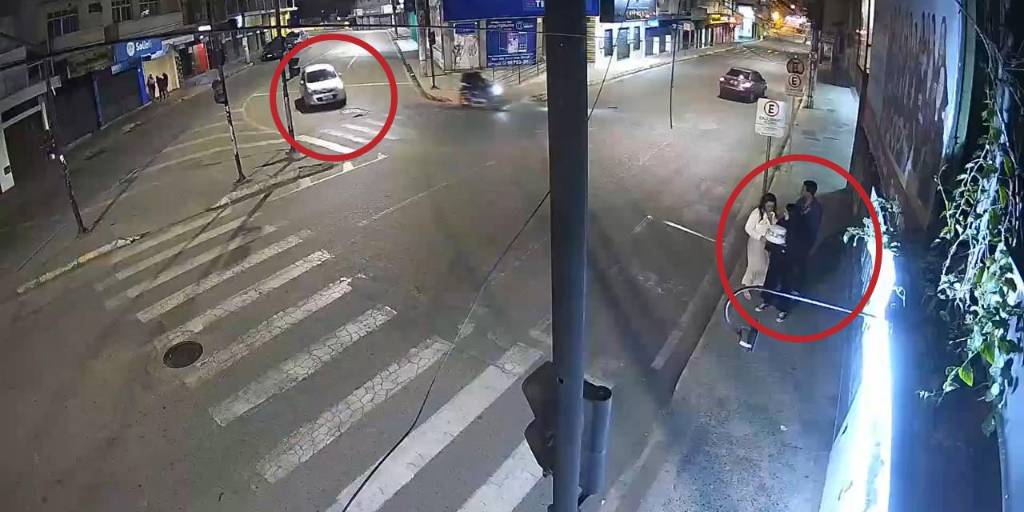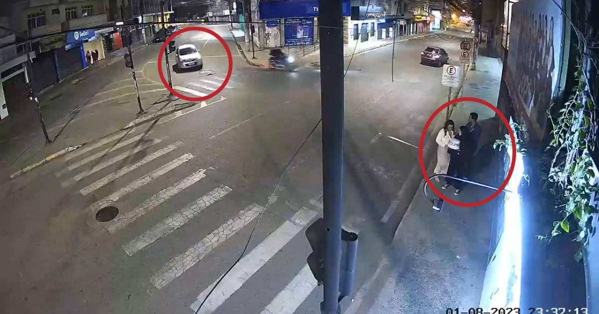 Cámaras de seguridad captaron el impactante momento en el que un vehículo invadió una acera y casi atropella a tres peatones que se encontraban caminando. El hecho se registró en Mina Gearis, Brasil y tras el accidente llegó la Policía Militar.
