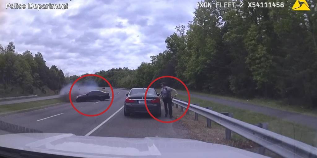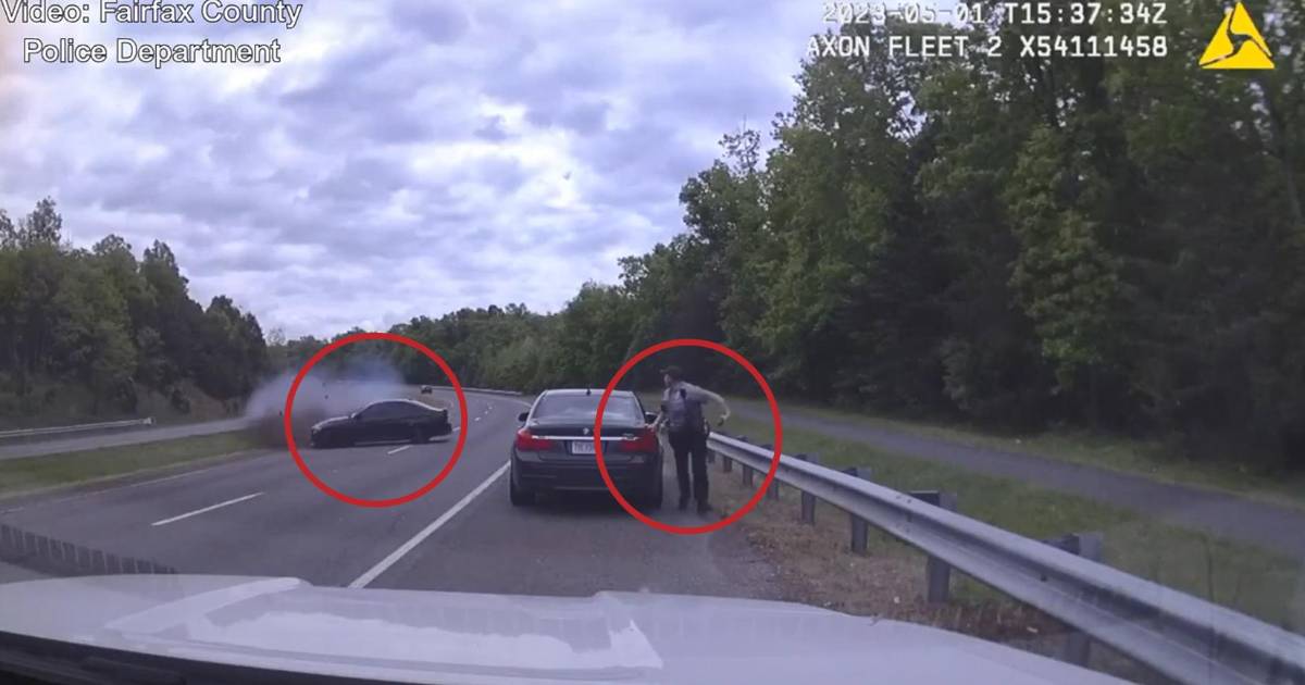 En un momento, el oficial se da cuenta que el automóvil viene a toda velocidad por lo que corre para poner a salvo su vida. Los autos chocan de frente y el vehículo gira, para luego chocar contra la patrulla de la policía, según el video que circula entre varios medios entre ellos NBC Washington.