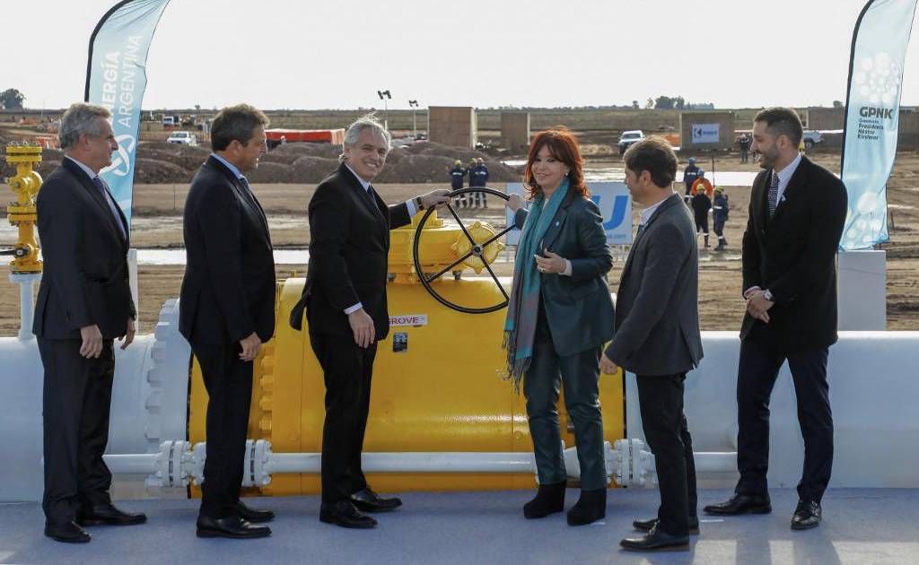 La apertura del sistema se realizó en una ceremonia en la planta gasífera “Saturno” en la ciudad de Salliqueló, a 520 km al sudoeste de Buenos Aires, montada para raer el shale gas desde la localidad de Tratayén, en el corazón de Vaca Muerta, en la provincia de Neuquén (sur).