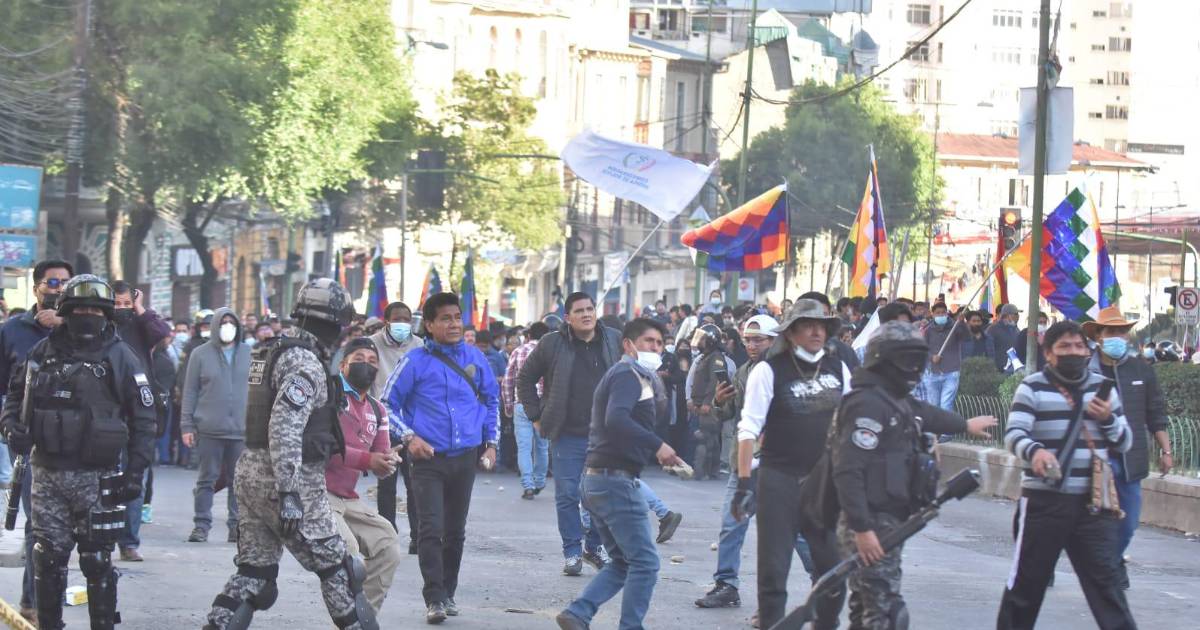 El grupo que impidió el desarrollo de la marcha por el Censo se encontraba con banderas rojas, Wiphalas y con pasamontañas.