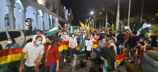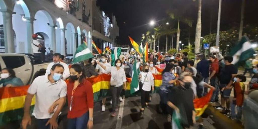 La movilización convocada por el Comité pro Santa Cruz llegó hasta la plaza 24 de Septiembre la noche de este jueves.