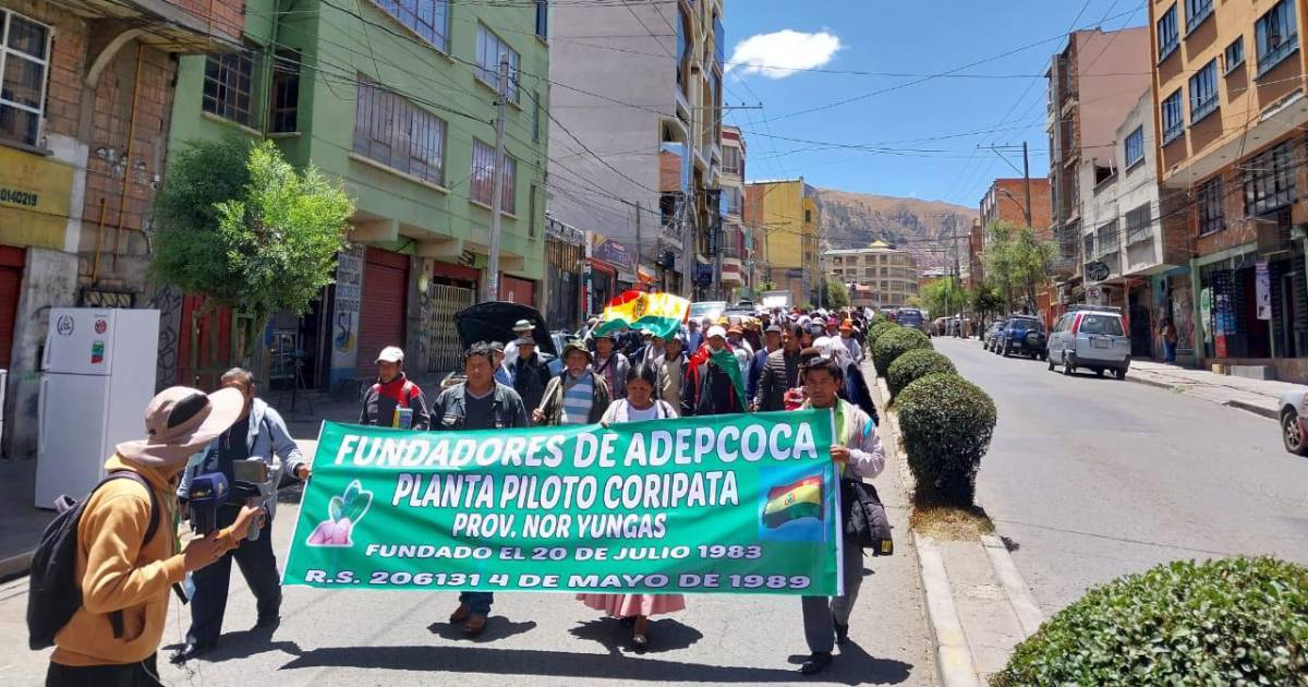 Cocaleros de la Asociación Departamental de Productores de Coca (Adepcoca) iniciaron una marcha desde la plaza Tejada Sorzado, zona de Villa Fátima, rumbo a la plaza de los Héroes.