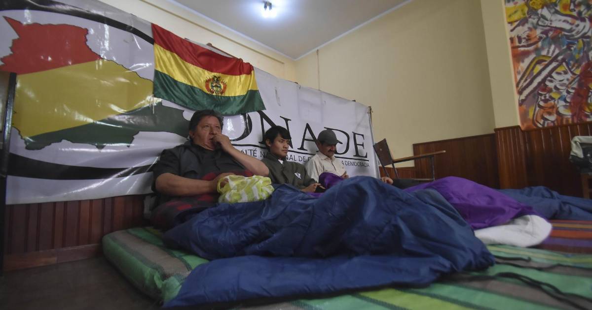 “Estamos recibiendo del interior del país, al menos cuatro dirigentes regionales más, que llegan de Oruro y se pliegan a esta dura lucha haciendo huelga de hambre poniendo en peligro su vida”, informó el activista del Conade, Julio Alvarado.