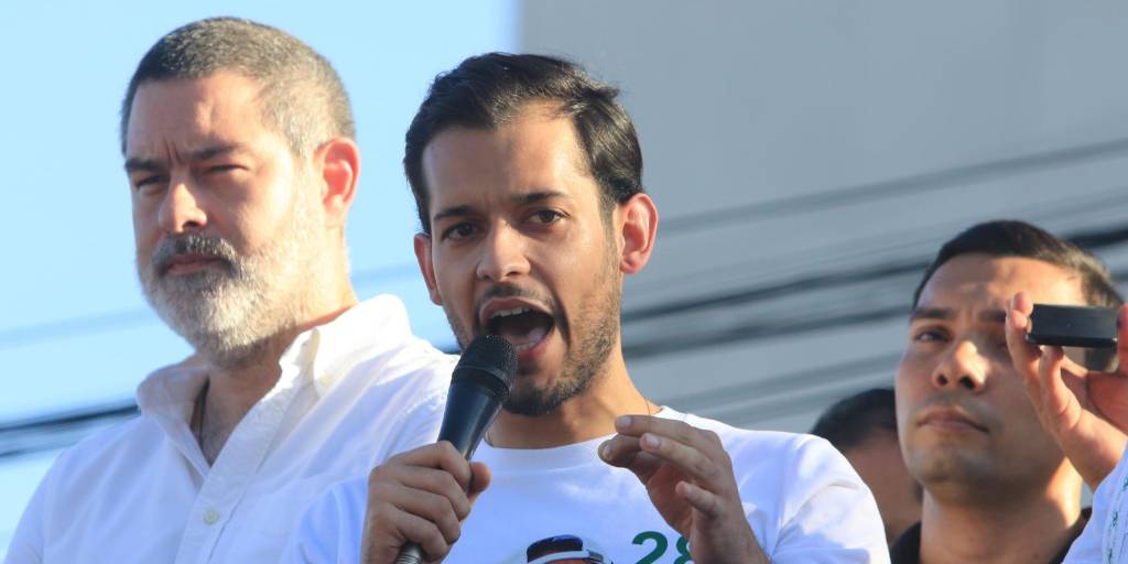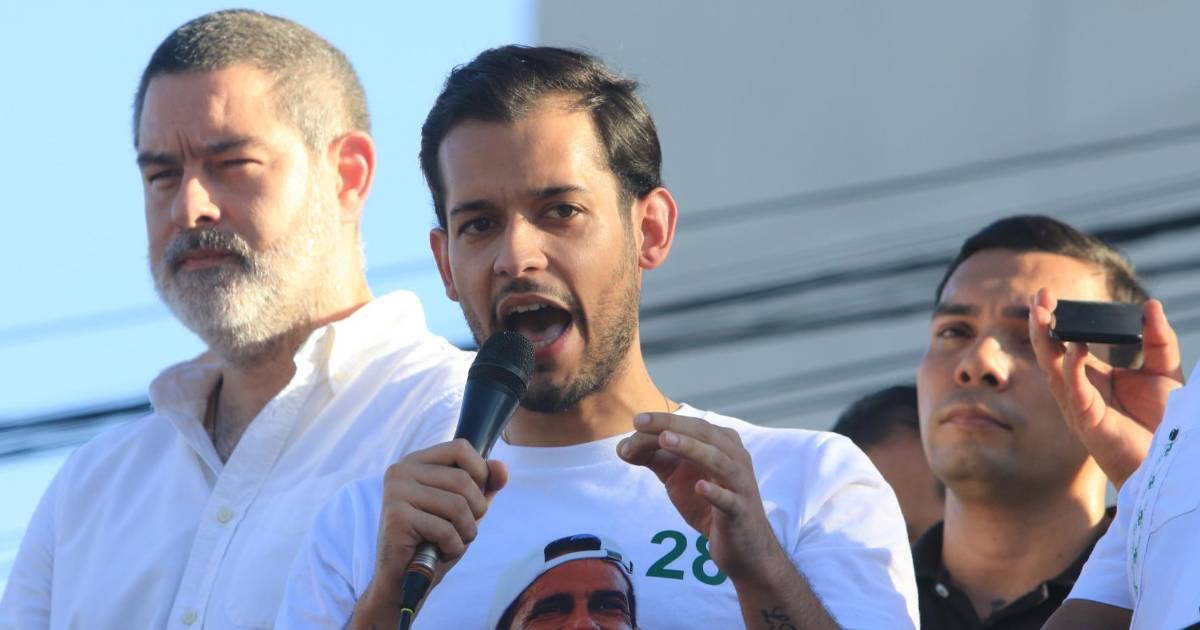 Luis Fernando Camacho Parada, hijo del gobernador Luis Fernando Camacho, fue el encargado de dar el discurso de inicio de la caravana que exige la liberación de la autoridad departamental.
