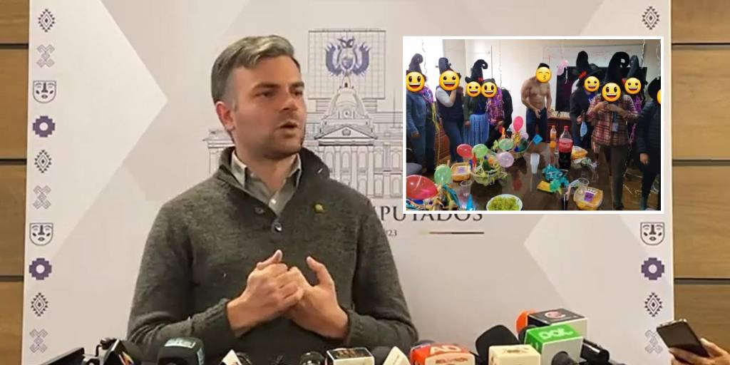 El diputado opositor José Manuel Ormachea, de la bancada de Comunidad Ciudadana (CC), presentó una serie de imágenes de una fiesta que, según su denuncia, fue celebrada en horario laboral en el interior de Entel, empresa estatal dependiente del Ministerio de Obras Públicas, donde no faltaron los ‘stripers’ y bebidas alcohólicas, según el legislador.