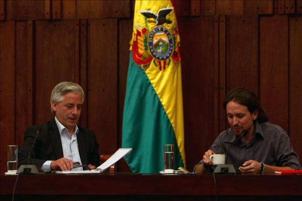 El vicepresidente de Bolivia anima al partido español Podemos a continuar con su renovación
