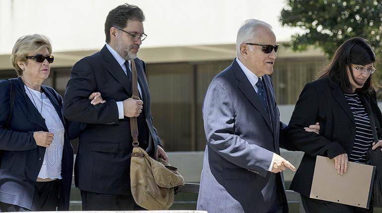 [Foto: APG] / Gonzalo Sánchez de Lozada (segundo de derecha a izquierda) en una foto de archivo tras salir de un tribunal de EEUU