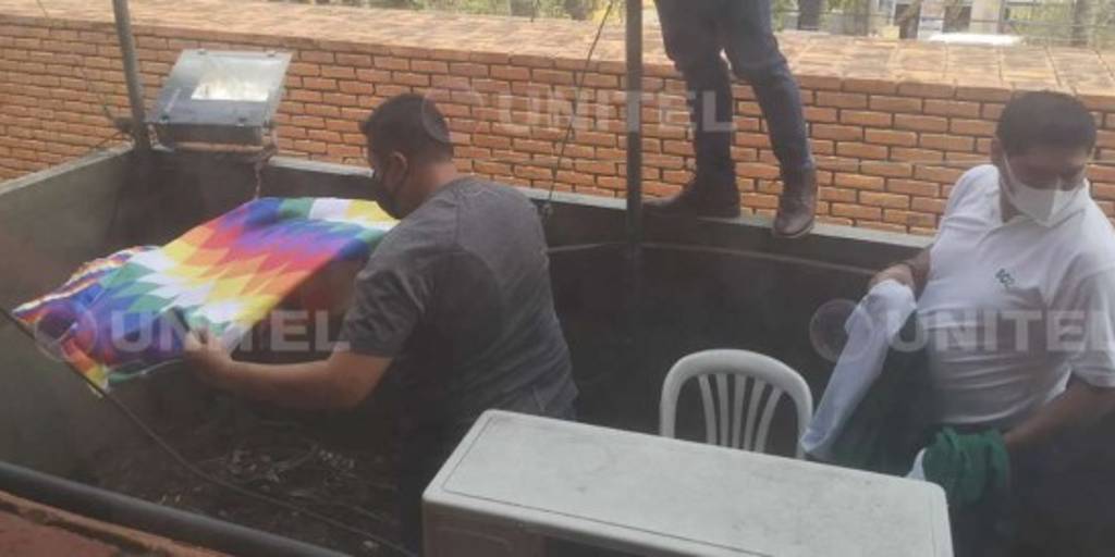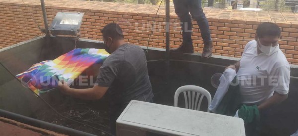 Momento en el que bajan la wiphala del frontis de la Gobernación / Foto: Yerko Guevara