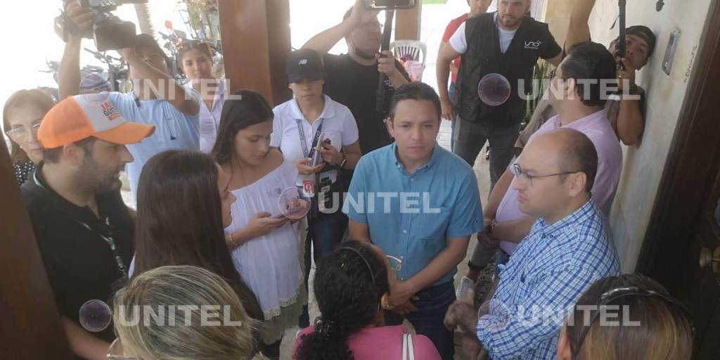 Cerca de 10 legisladores entre senadores y diputados de Creemos y Comunidad Ciudadana llegaron hasta la vivienda de Calvo, quien debe cumplir detención domiciliaria las 24 horas, por orden de la justicia.