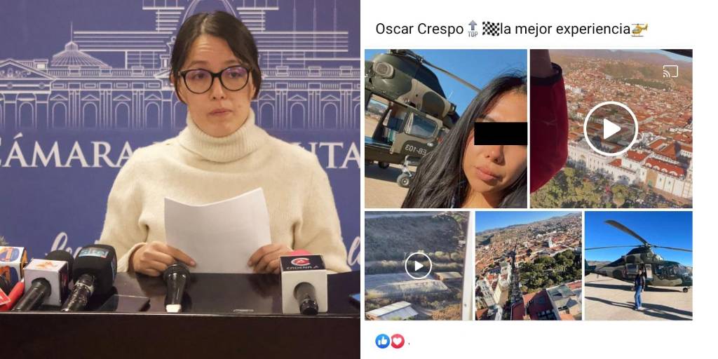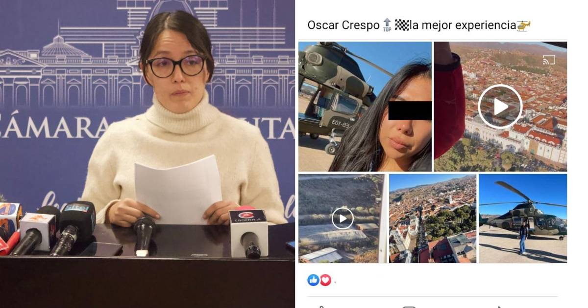 “Han tenido el cinismo de publicarlo en redes sociales”, expuso la parlamentaria en conferencia de prensa, al exponer que la autoridad del TCP, Rene Iván Espada, hizo uso de la aeronave durante la competencia nacional de automovilismo ‘Óscar Crespo’ que se desarrolló en días pasados en el departamento de Chuquisaca.