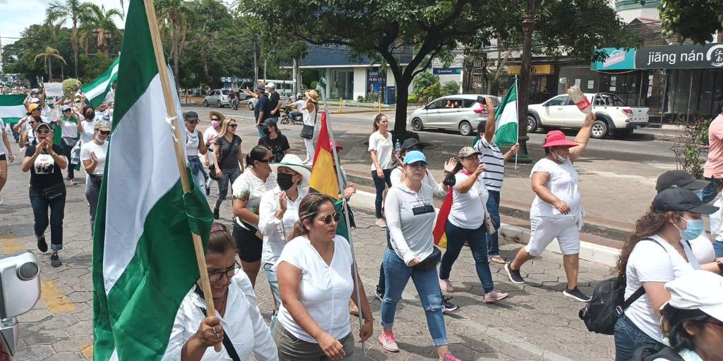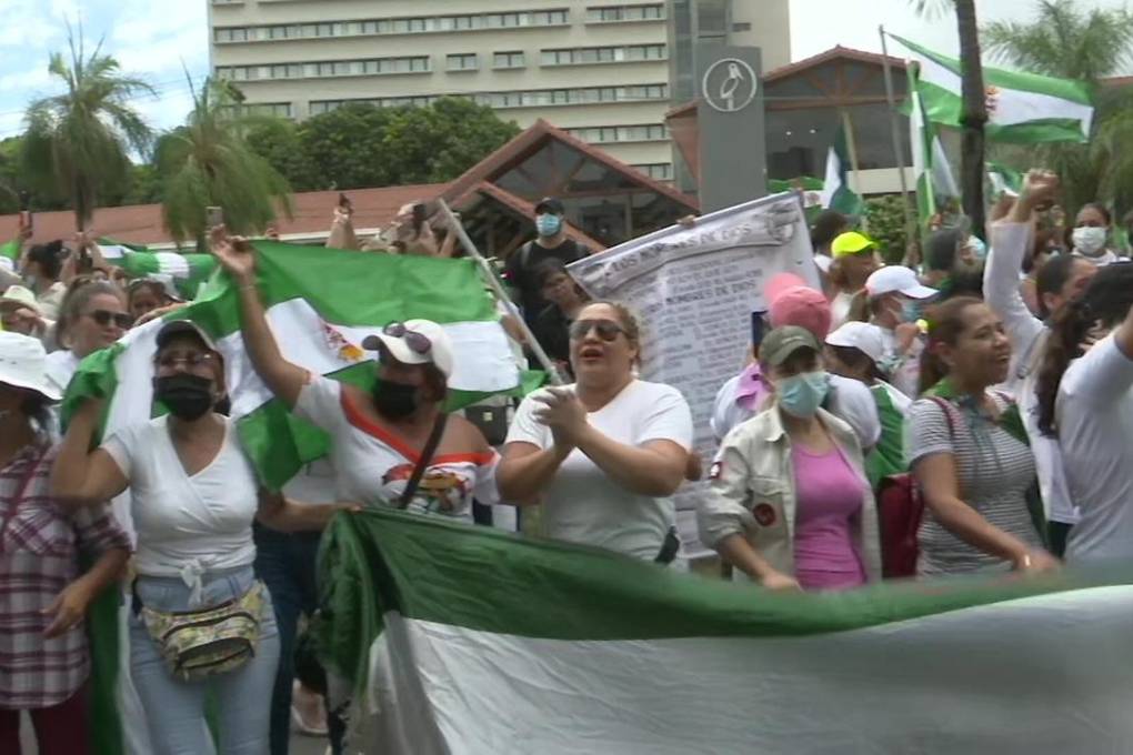 ”Hemos llegado hasta las puertas del comando de la Policía en esta marcha pacifica, somos mujeres y quiero que vean que no estamos armadas y el único escudo son nuestras banderas. Pedimos la libertad de nuestro gobernador”, declaró la asambleísta, Keila García