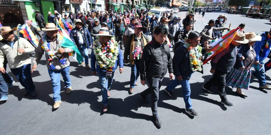 [Foto: APG] / Marcha del sector afín al ‘evismo’ que se opone a la nueva dirigencia de la CSUTCB