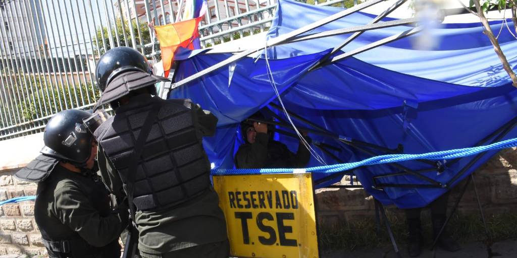 El ministro de Gobierno, Eduardo Del Castillo, asegura que no hubo violencia en la intervención policial a la ‘vigilia’ de simpatizantes ‘evistas’, apostados en la acera del Tribunal Supremo Electoral (TSE) en La Paz. La intervención sucedió la mañana del miércoles por agentes policiales.