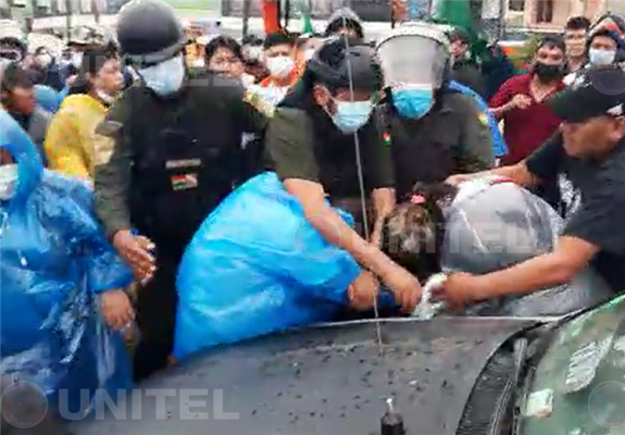 Las piedras iban de un lado al otro durante un enfrentamiento generado este lunes, cerca de las 9:30 en la zona de Los Lotes (Santa Cruz), en donde un grupo de personas intentó levantar un punto de bloqueo que había sido instalado por otro bando que reclamaba por el tratamiento de la ley 'antilegitimación'.