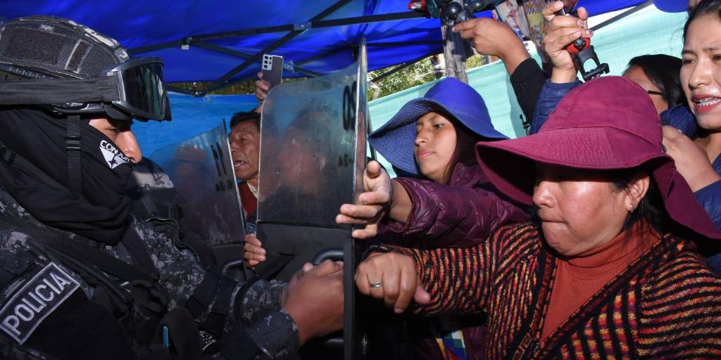Antes de las 9:00 de este miércoles, un grupo de policías intervino la vigilia del Movimiento Al Socialismo (MAS), del ala ‘evista’, que había sido instalada en puertas del Tribunal Supremo Electoral (TSE) a inicios de este mes.